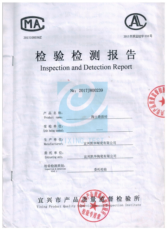 陶土路面砖检测报告
