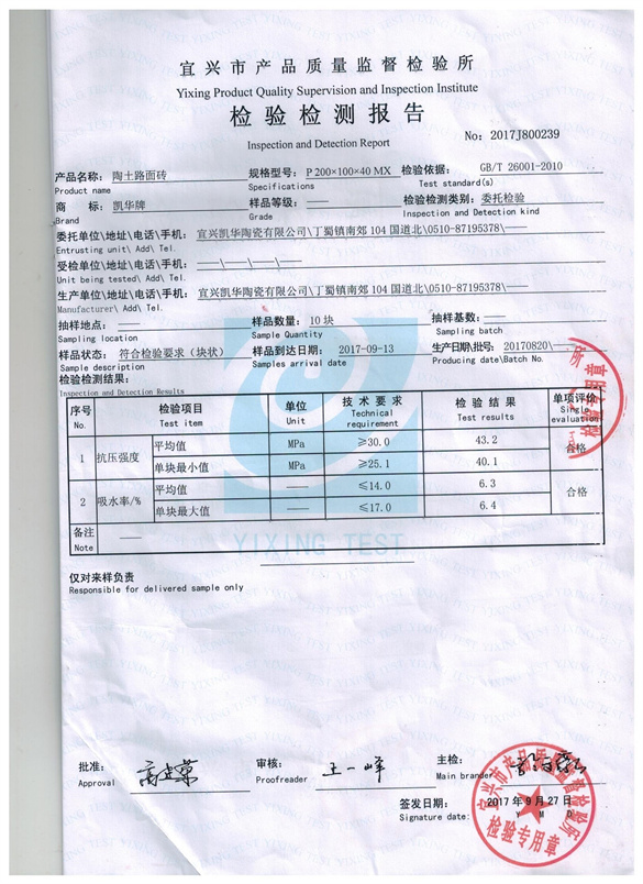 陶土路面砖检测报告